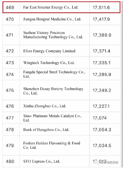 On July 10, the Fortune released the latest "Fortune China 500" list on July 10. Far East Smarter Energy Co., Ltd. (hereinafter referred to as “Smarter Energy”, stock code: 600869), a subsidiary of Far East Holding Group Co., Ltd., ranked 469th with an operating income of RMB 17.5 billion.